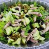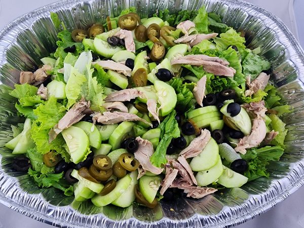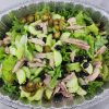 Salad content (Lettuce, grape tomatoes, cut olives, cucumbers, jalapenos, olive oil, lime juice and chicken)